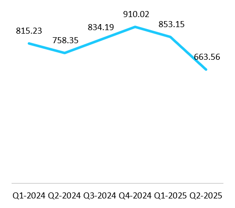 The price trend of ammonia in China from Q1 2024 to Q2 2025 shows stability, followed by a decline to USD 757 in Q2 2024, due to reduced demand or increased domestic supply. A sharp drop in Q2 2025 could be attributed to oversupply, lower energy costs, or reduced export activity, influenced by global market dynamics and domestic policy adjustments.