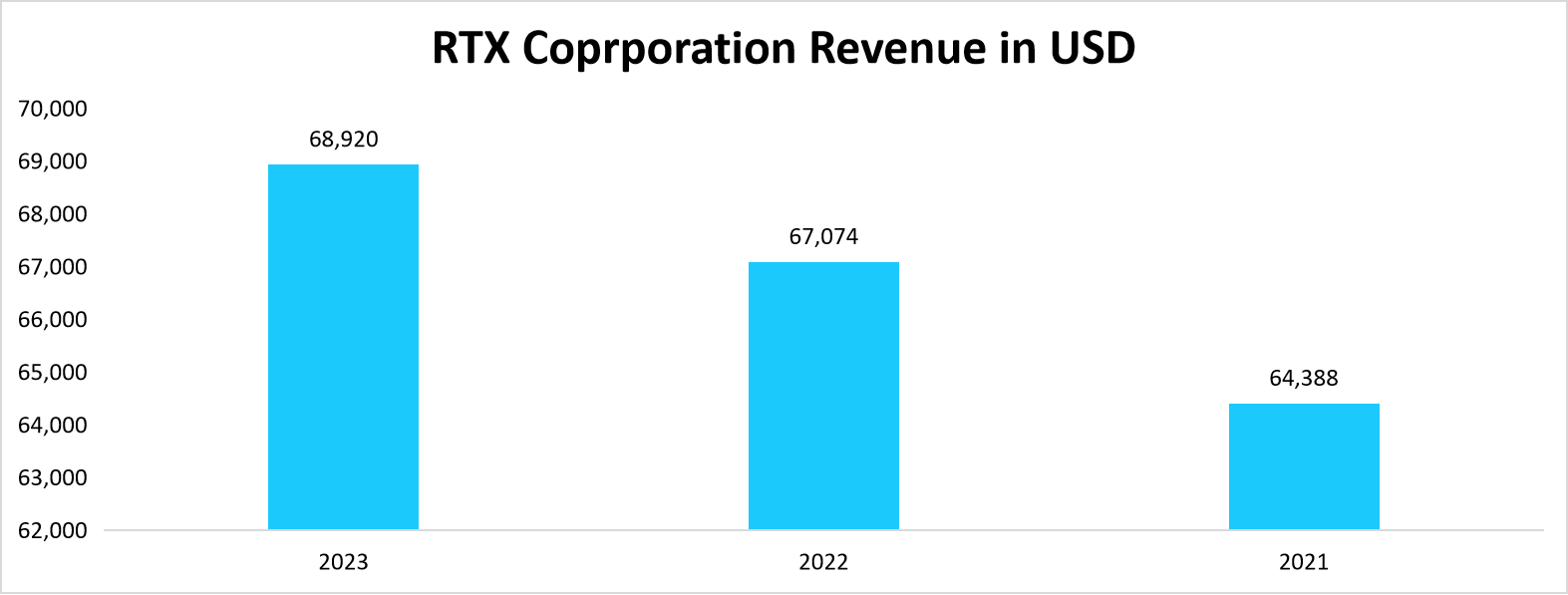 The below shows the revenue of RTX Corporation over three consecutive years (2021-2023)