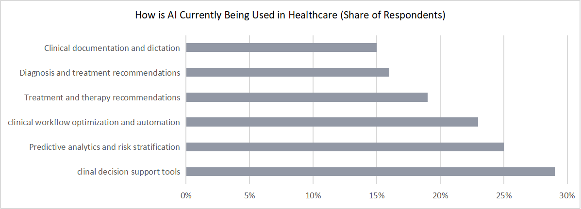 The following chart shows the breakdown of US hospitals to prioritize the use of AI as of 2023