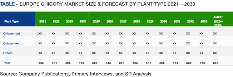 Additionally, Europe is home to several leading players in the chicory industry, which facilitates widespread availability and further innovation in product applications. The European food and beverage industry has also embraced Cichorium intybus as a natural ingredient in low-sugar, high-fiber, and functional food products, aligning with increasing consumer preference for healthier options.