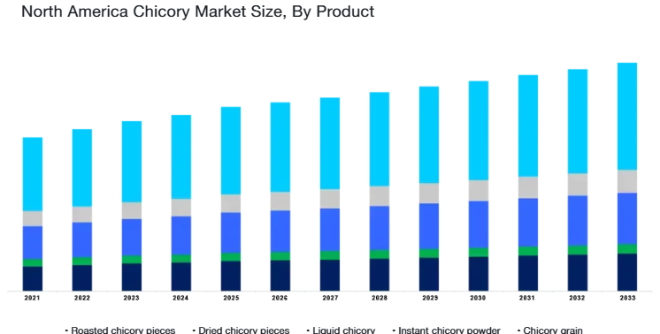 The region has witnessed increasing consumer interest in health and wellness, leading to rising demand for functional foods, dietary supplements, and natural ingredients. Chicory, particularly inulin derived from Cichorium intybus root, is gaining popularity due to its prebiotic properties, which support digestive health, weight management, and blood sugar regulation. As more consumers seek out foods that promote gut health, the demand for chicory as a natural fiber additive has grown in food and beverage applications across the U.S. and Canada.