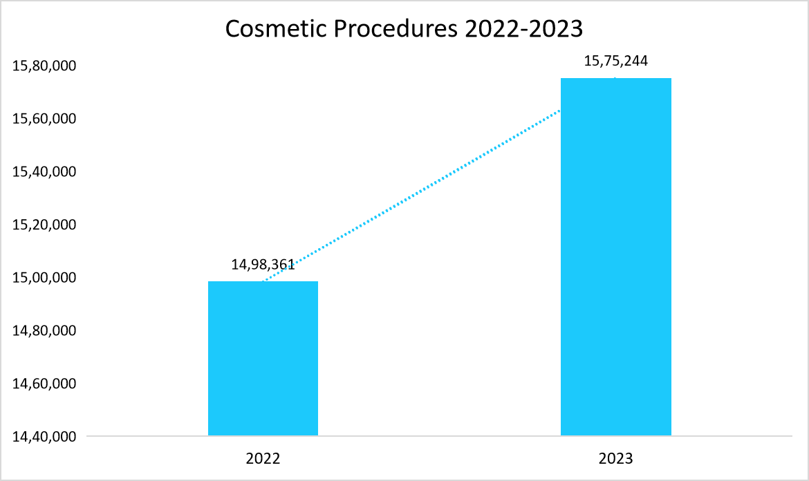 The below chart shows an increase in overall cosmetic procedures reported since 2022.