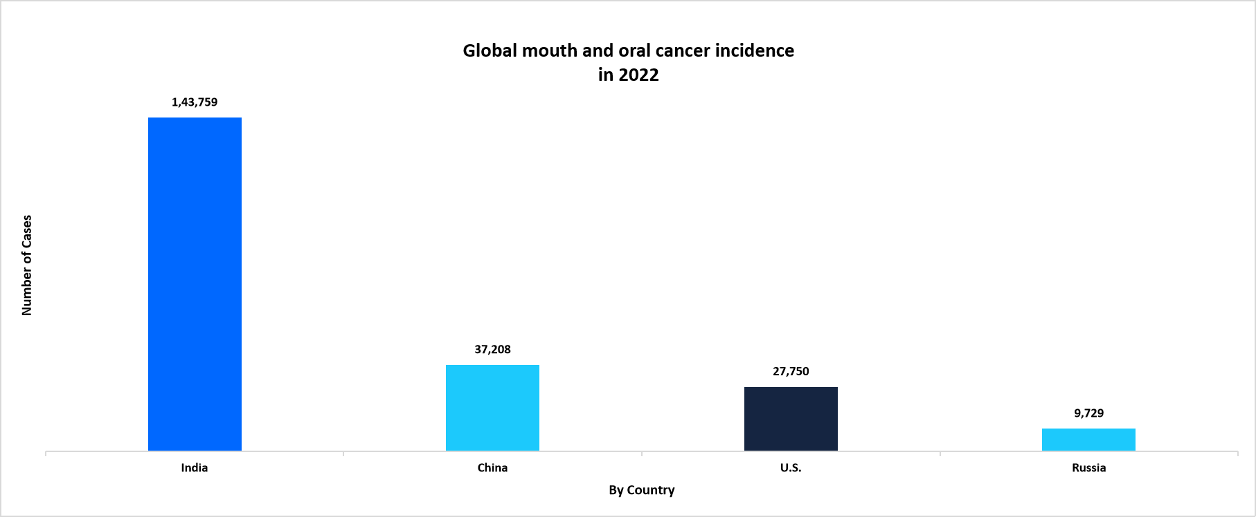 The below graph shows global mouth and oral cancer incidence cases in 2022