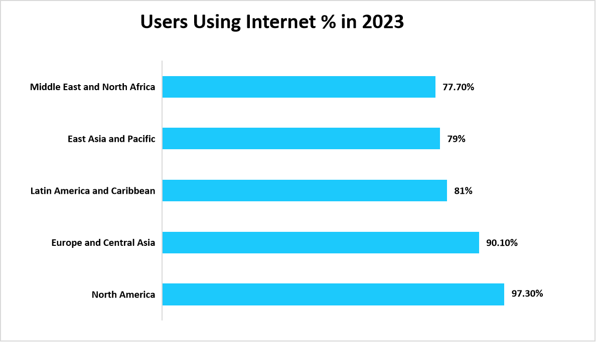 The chart below illustrates the growing number of internet users across regions in 2023