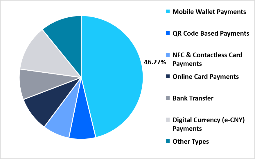 The Mobile Wallet Payments segment dominated the market with a revenue share of 46.27% in 2025, driven by the deeply embedded super-app culture of China, wherein users depend on the integrated wallet ecosystem for everything, from shopping and transportation to bill payments and lifestyle services.
