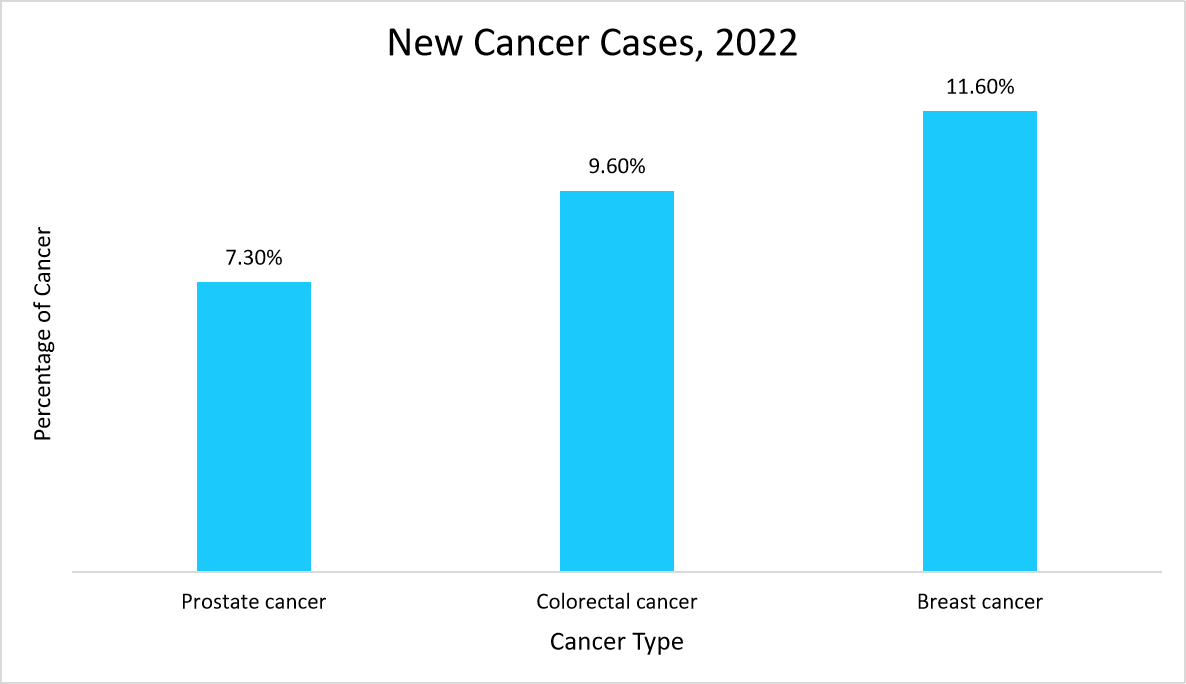 The below graph shows new cancer cases globally in 2022