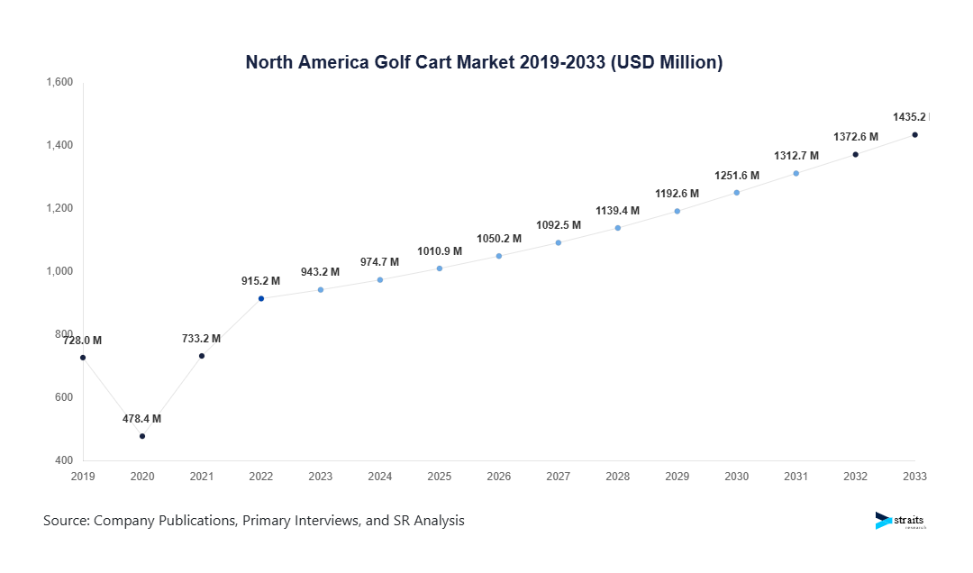 The global golf cart market has evolved beyond the greens of golf courses and country clubs, emerging as a crucial component in diverse industries for short-distance transportation and mobility solutions. The market size reached USD 1.88 billion in 2024, and Straits Research estimates the global golf cart market to grow to USD 2.84 billion by 2033, growing at a CAGR of 4% during the forecast period (2025–2033).