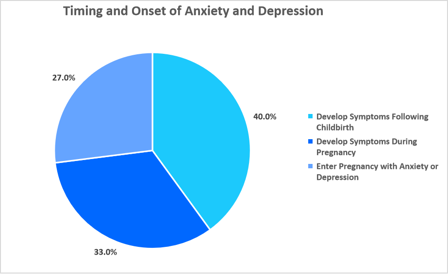 The below chart shows the timing and onset of anxiety and depression in new mothers