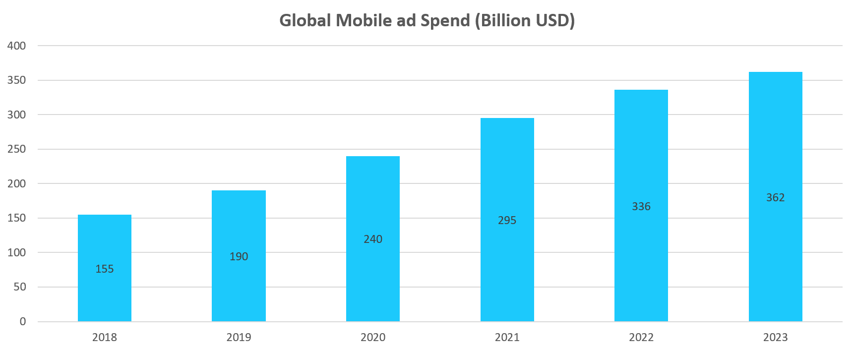 The following figure illustrates the growth trajectory of global mobile advertising spending over recent years, reflecting the increasing investment businesses are making in mobile advertising strategies to enhance consumer engagement.