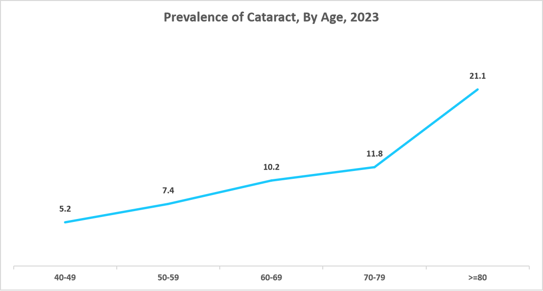 The graph below highlights the strong correlation between age and the prevalence of cataracts, underscoring the growing market need for these surgical aids