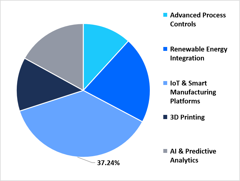 IoT & Smart Manufacturing Platforms accounted for 37.24% of the revenue share in 2025, dominating the market. The growth of digitalized production lines and real-time monitoring systems in semiconductor and electronics manufacturing has, in turn, driven growth in this sector by enabling better operational efficiency, waste reduction, and improved energy use.