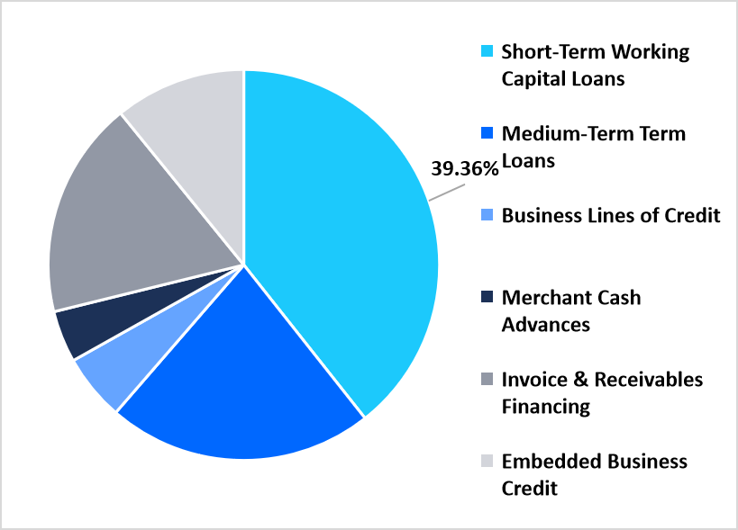 The segment of Short-Term Working Capital Loans dominated the market share with 39.36% revenue in 2025. This segment is driven by the rise of immediate financing needs among small and micro enterprises to manage cash flow, purchase inventories, and meet short-term operational costs. Demand has surged as supply chains continue their recovery across the globe and SMEs more and more move to digital payment systems in search of flexible, collateral-free working capital solutions.