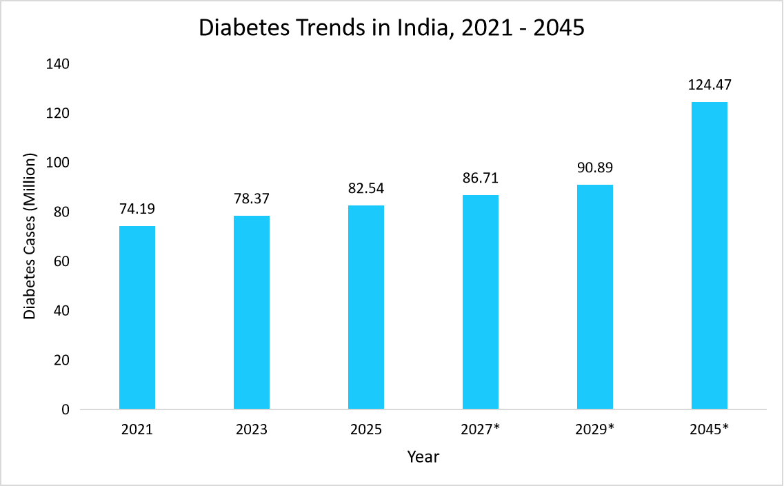 Source: International Diabetes Federation, World Health Organization (WHO), and Straits Research (* indicate projections)