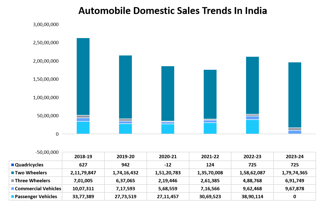 - For instance, according to SIAM, standard passenger cars constituted over 80% of total vehicle sales in India in 2023.