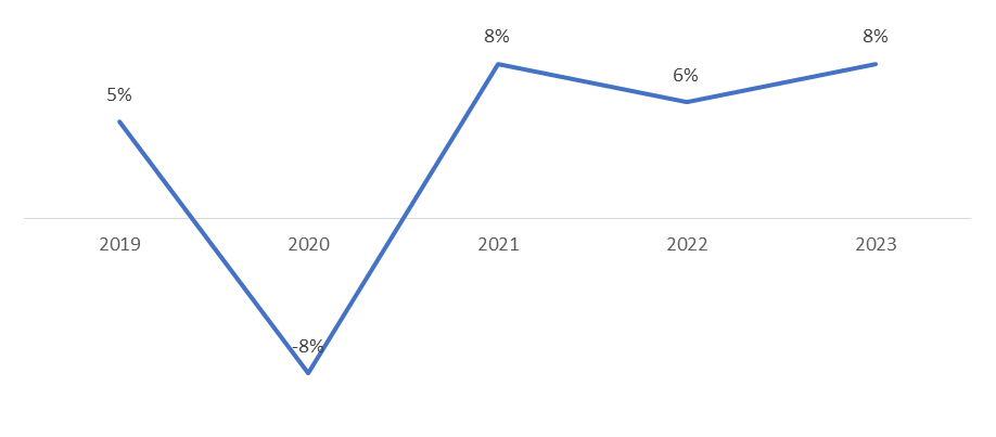 Fig: Global Beauty Care YOY Market Growth, 2019-2023 (%)